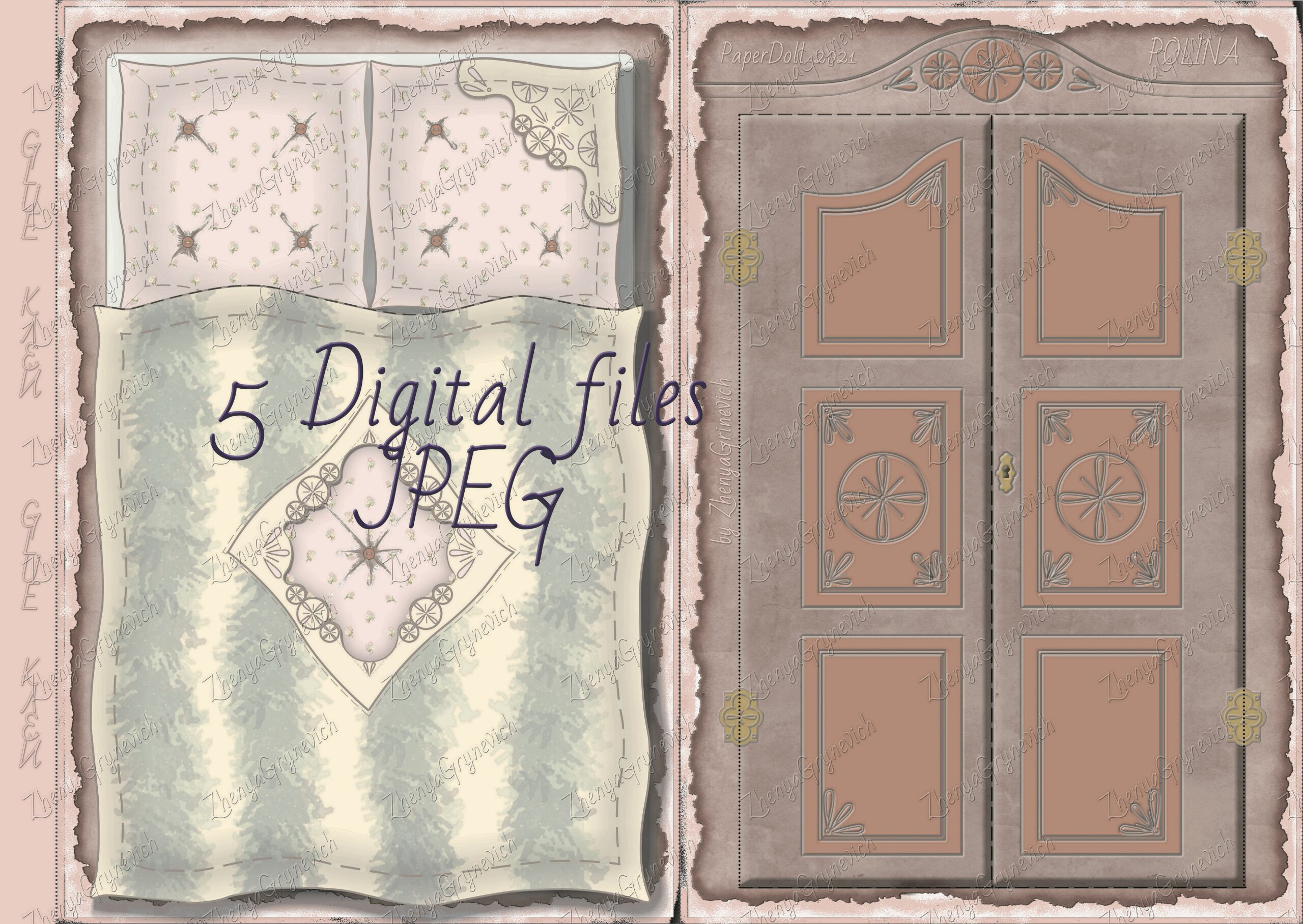 Digital Paper Doll Palina file pages doll, clothes, envelope-bed-wardrobe, Digital printable Paper Doll for your artwork and crafting project – Altered art, Scrapbook, vintage project.