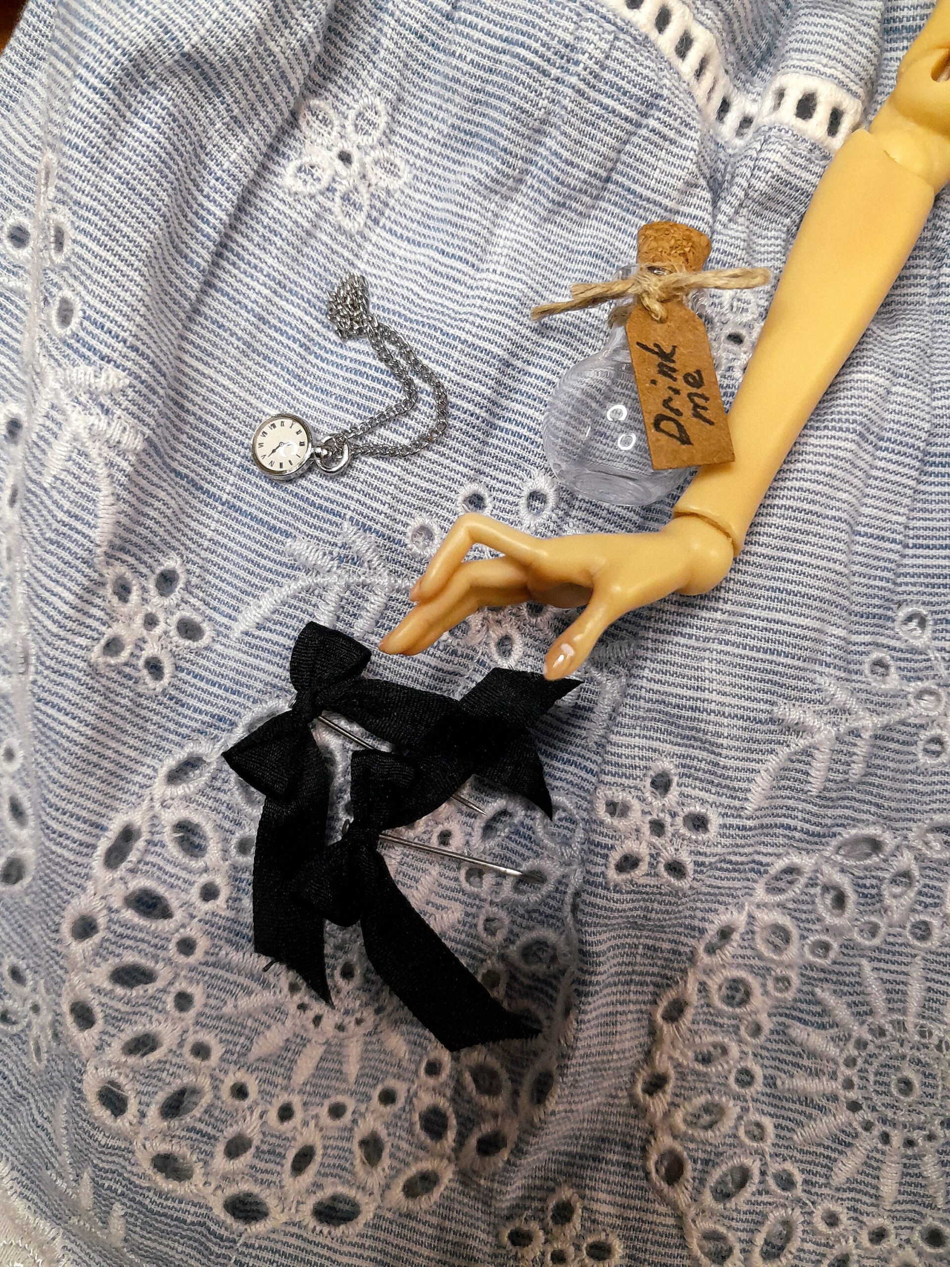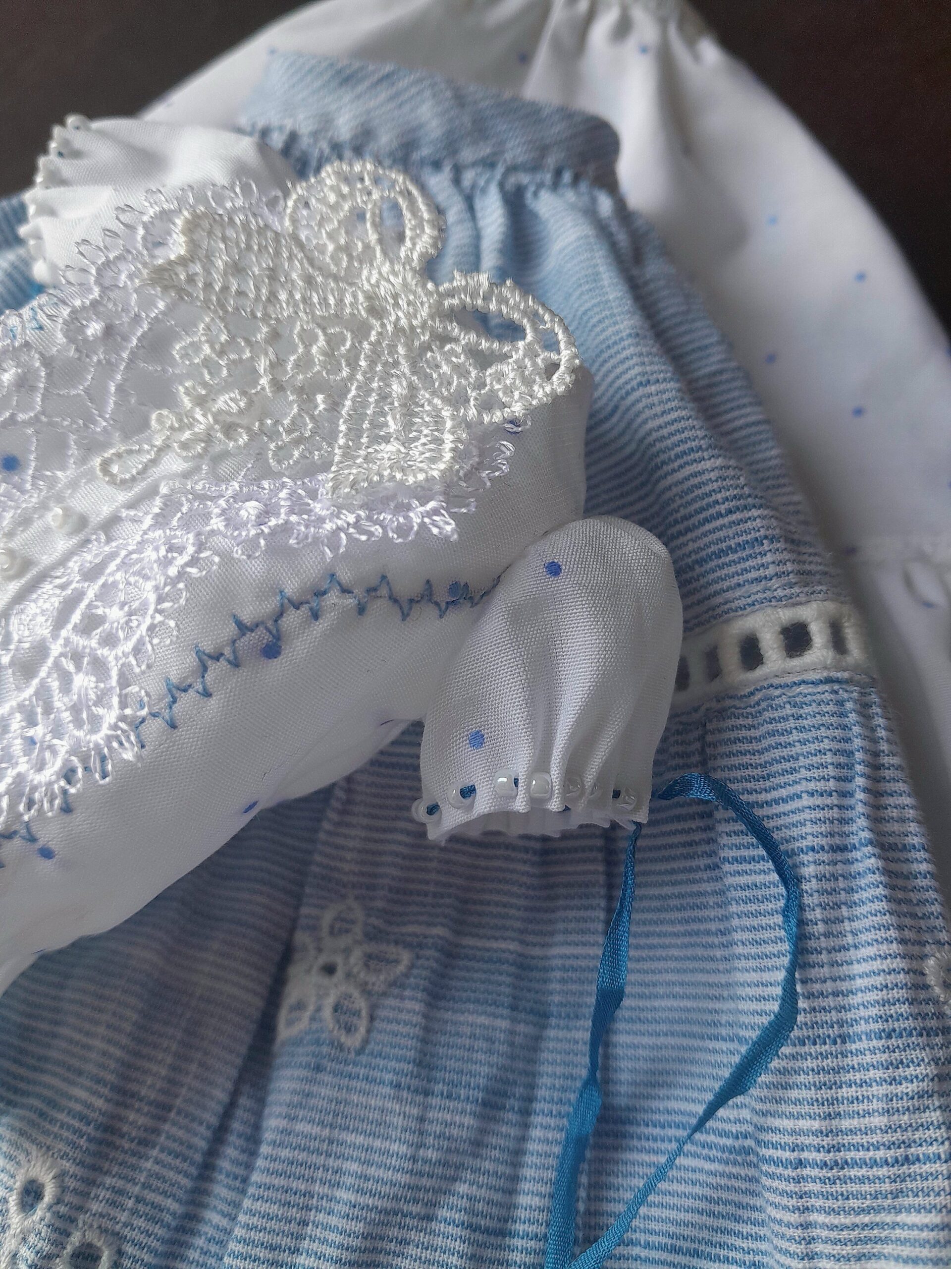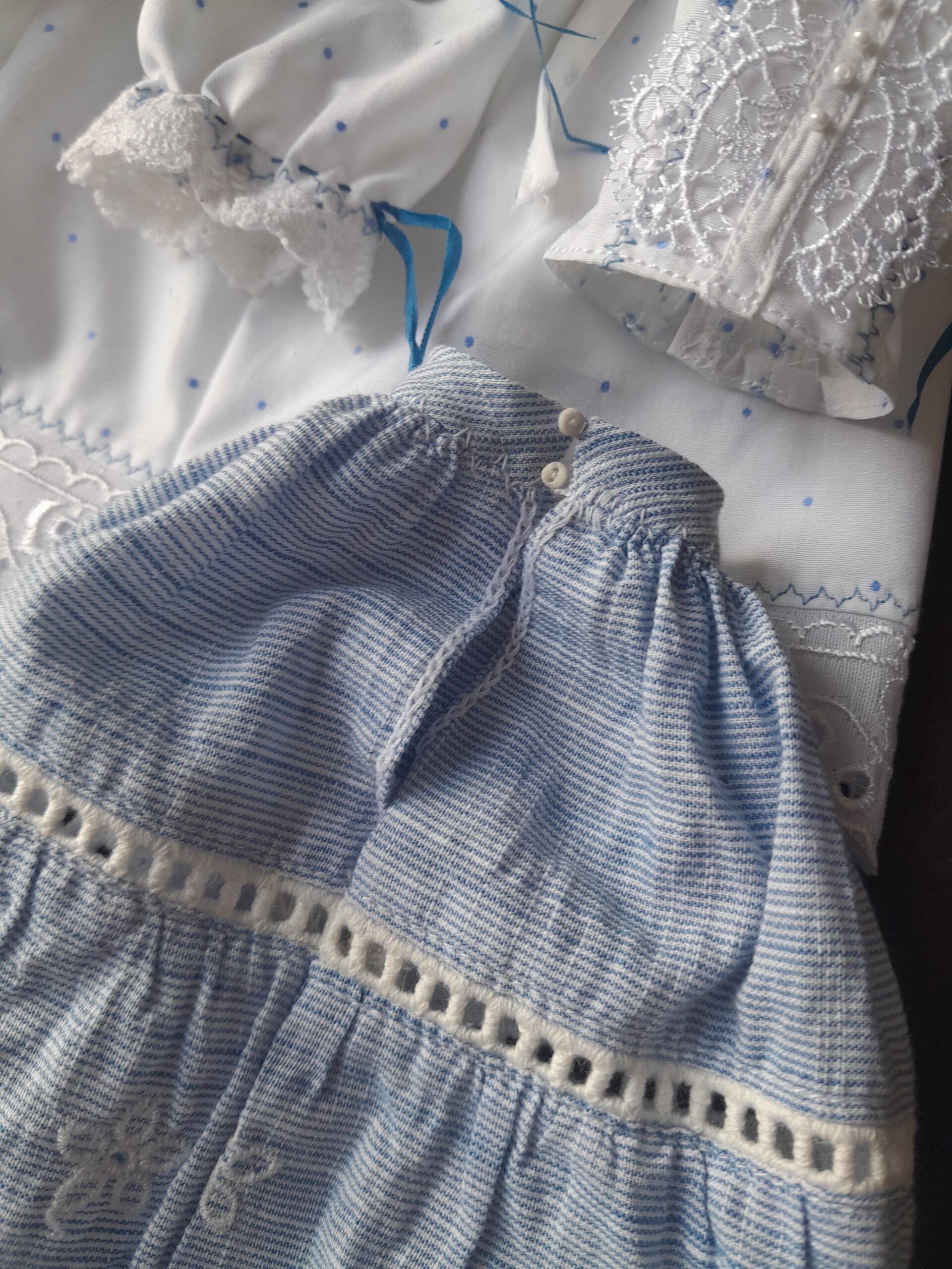 Built in delicate layers: a cotton underdress, vintage-inspired skirt, hand-crocheted lace details, fine beading, and silk ribbons. Each element is carefully composed by hand, creating a sense of quiet complexity and depth.