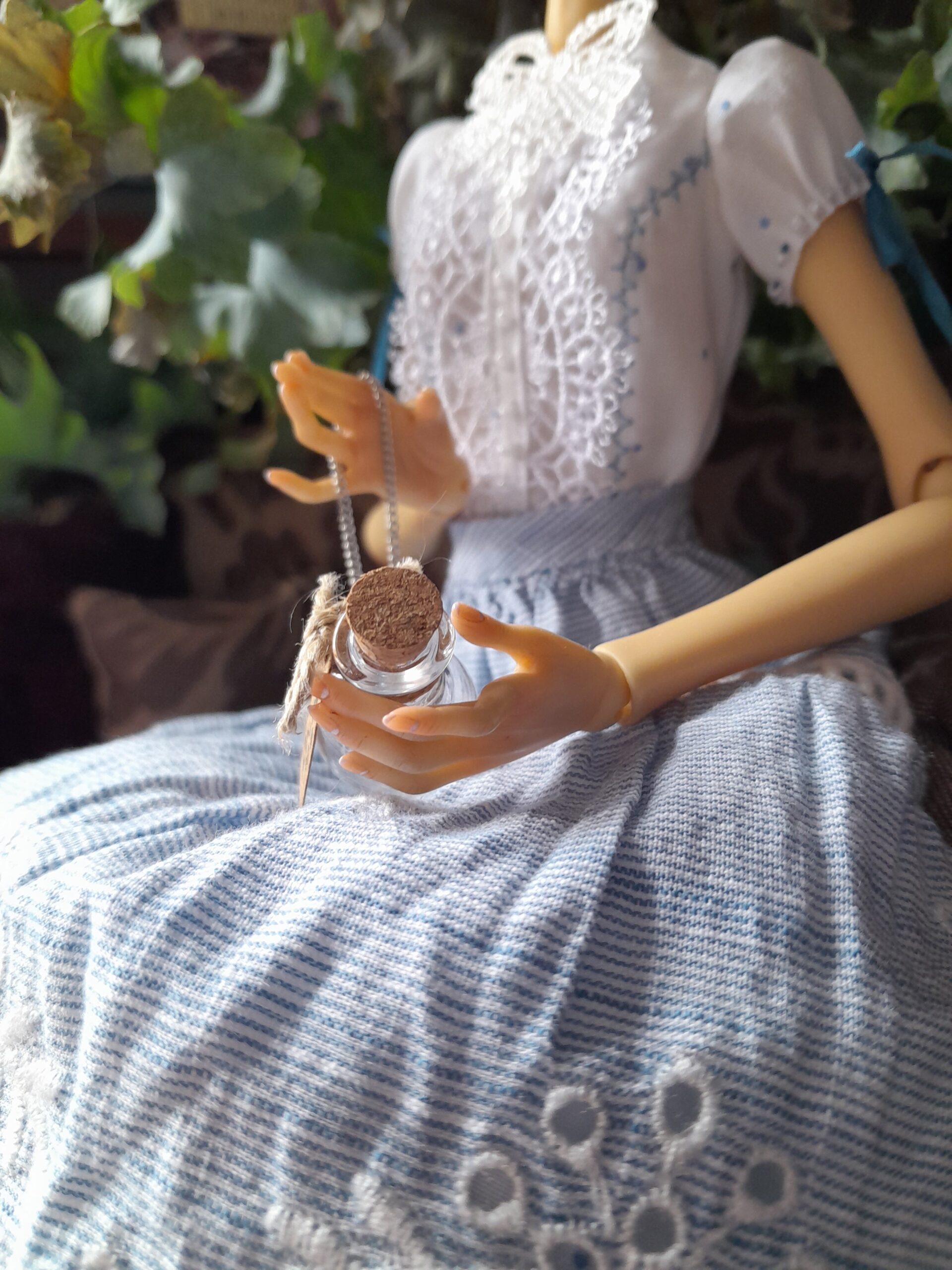 The set includes miniature accessories — a small glass bottle and a pocket watch — adding a subtle narrative, as if capturing a moment just before a choice is made.