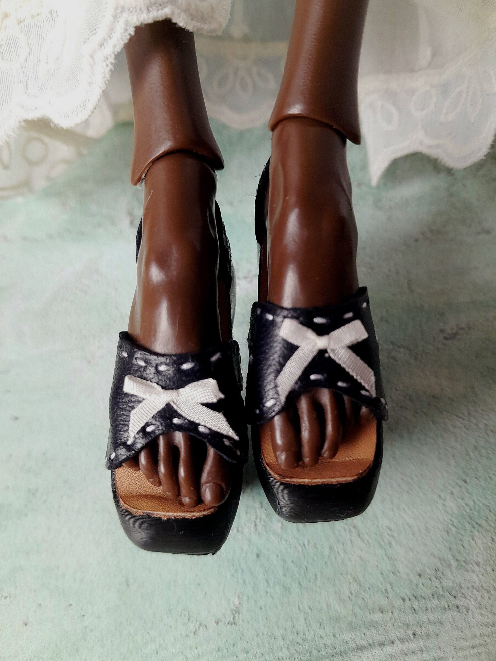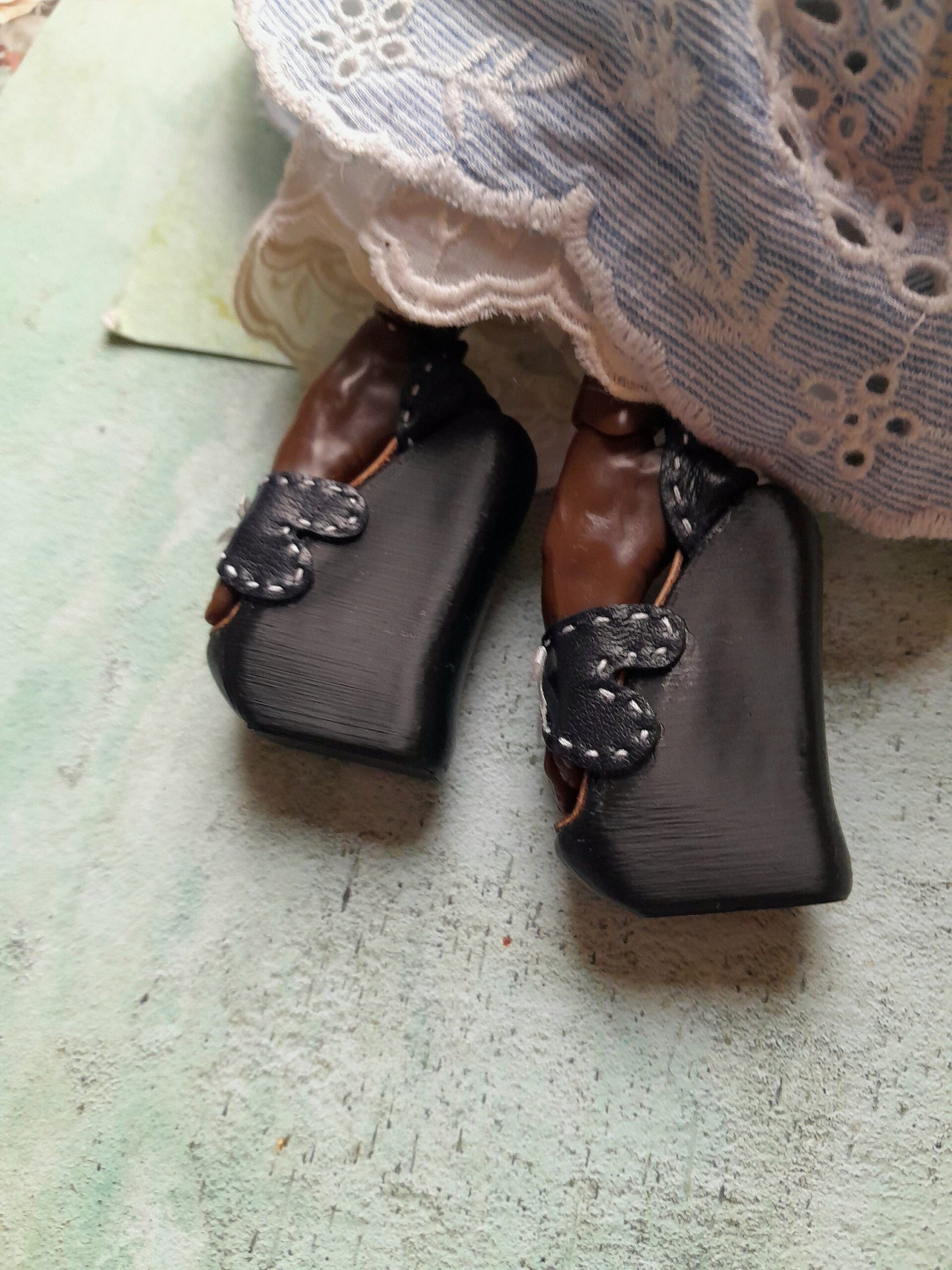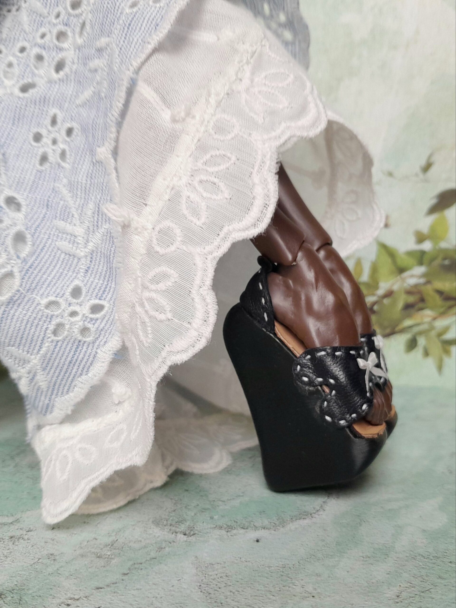 I designed these Popovy doll platform shoes for many different looks, from everyday outfits to elegant and artistic styles. You can add a ribbon or cord to the loop and tie it around the doll’s ankle for a personal touch. In my store, you can easily find not only individual items but also full sets of clothing, shoes, and accessories. All pieces match in style and color, you can also find a matching genuine black leather briefcase to create a complete look.