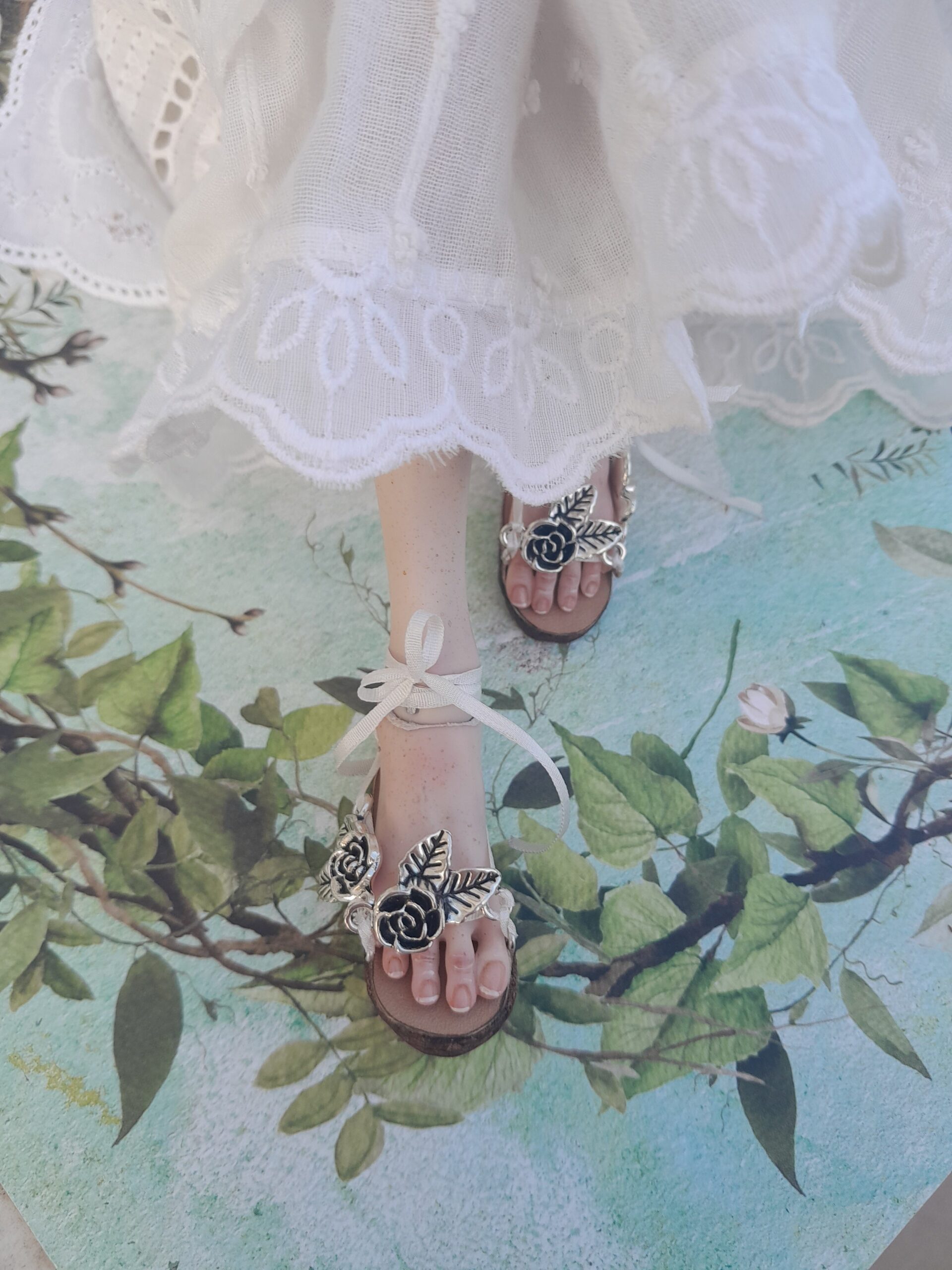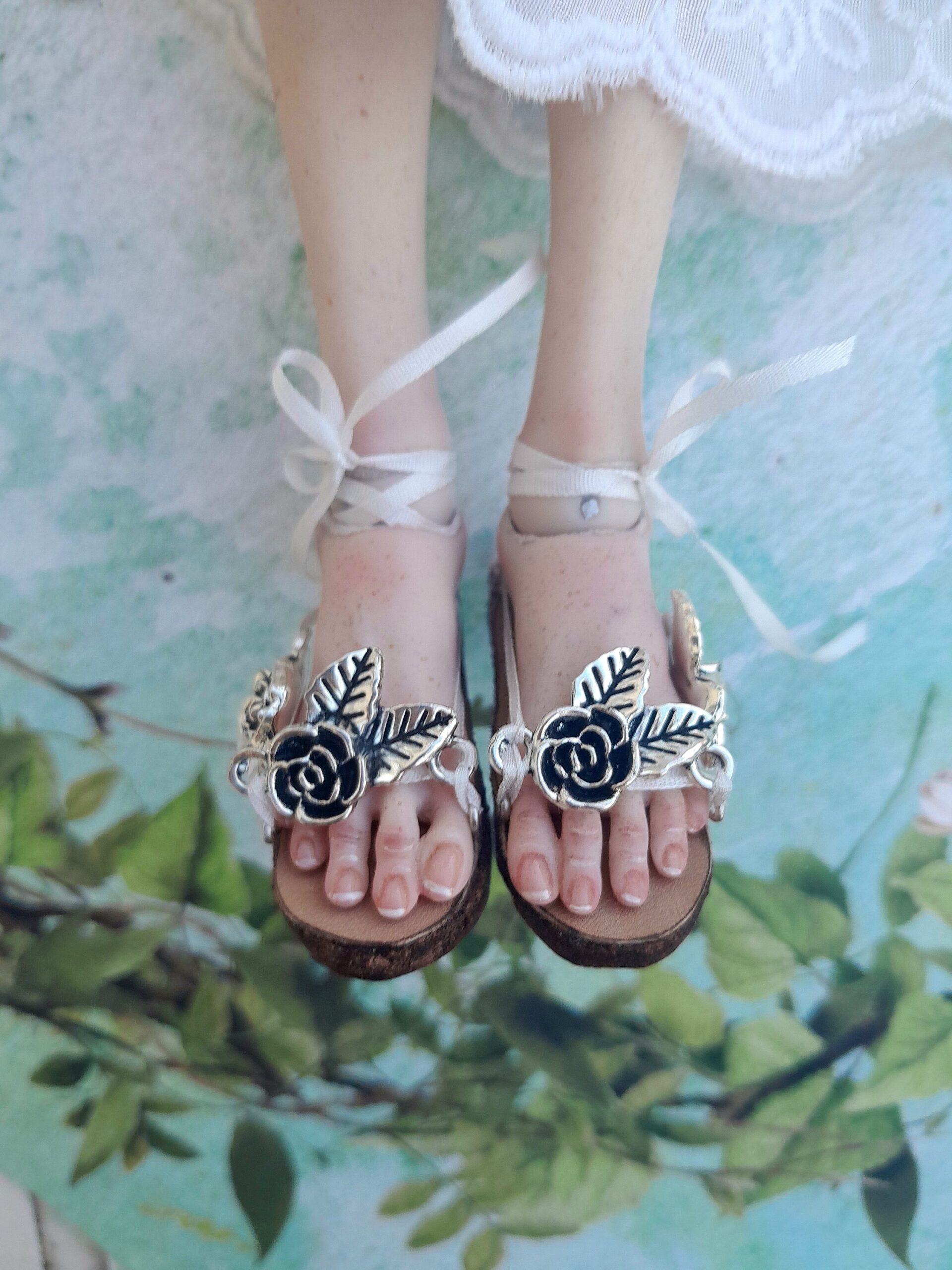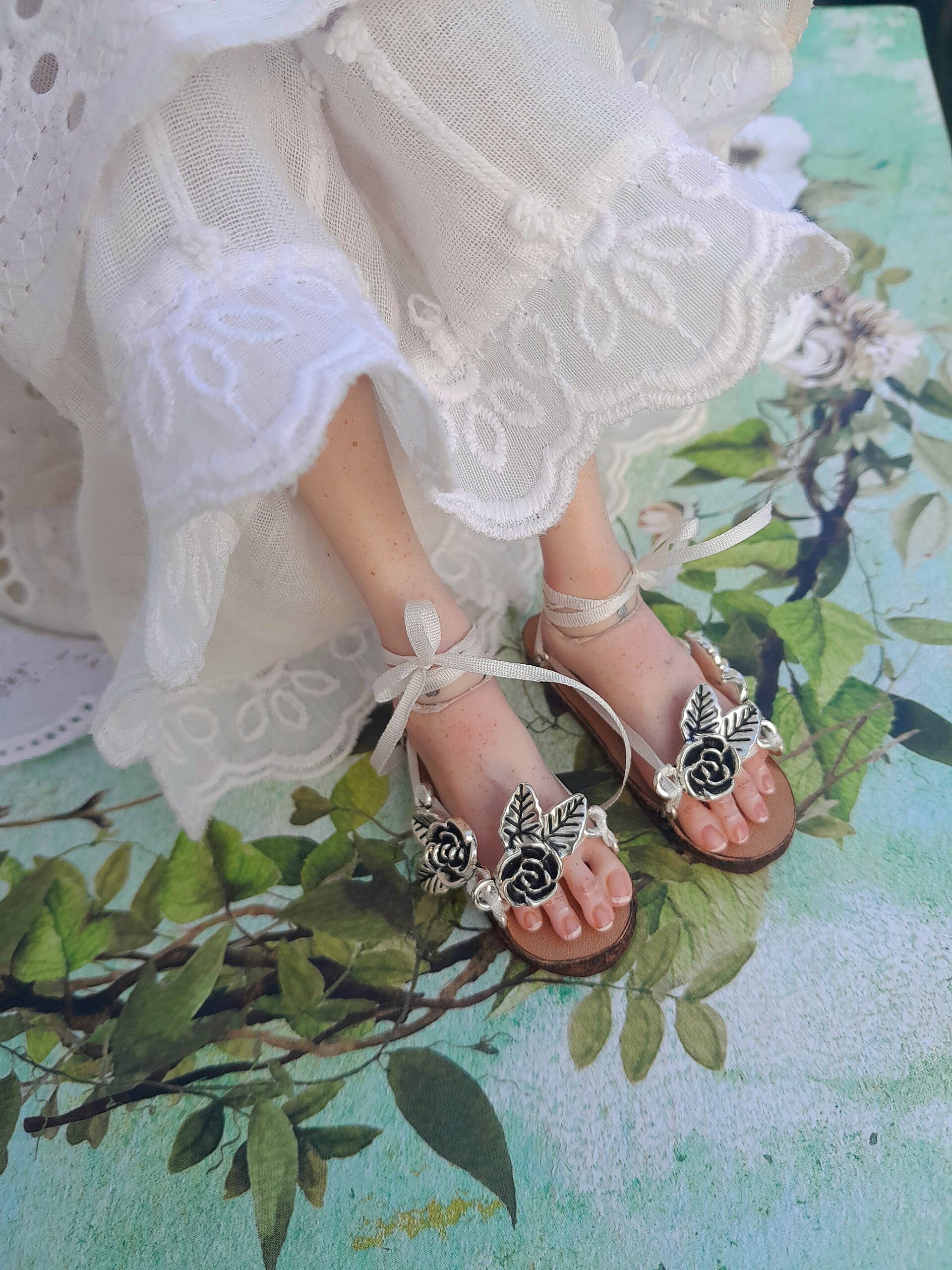The sandals feature a flexible ribbon fastening. Thanks to this design, you can easily adjust the fit to different foot widths. Therefore, the shoes sit securely while still allowing soft adjustment. This makes them comfortable to use for posing, display, and doll photography. At the same time, the shoes are easy to put on and remove.
